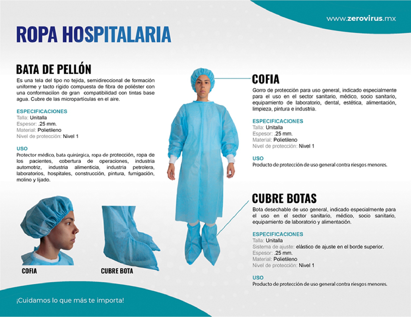 Protector médico bata quirúrgica, ropa de protección. ropa de los pacientes, cobertura de operaciones. industria automotriz, industria alimenticia, industria petrolera, laboratorios. hospitales. construcción, pintura, fumigación, molino y lijado.